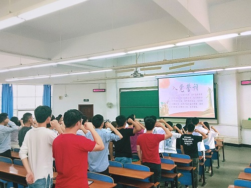 党课最后,研究生支部和外经贸党支部书记严荣华老师带领大家重温入党誓词,同时献上对毕业生党员们的希望与祝福。希望所有毕业生们做到情系母校,做一个有感恩的人。无论党员同学今后身处何方,都能不忘初心、牢记使命、锐意进取、埋头苦干,努力为实现中华民族伟大复兴的中国梦贡献智慧和力量!