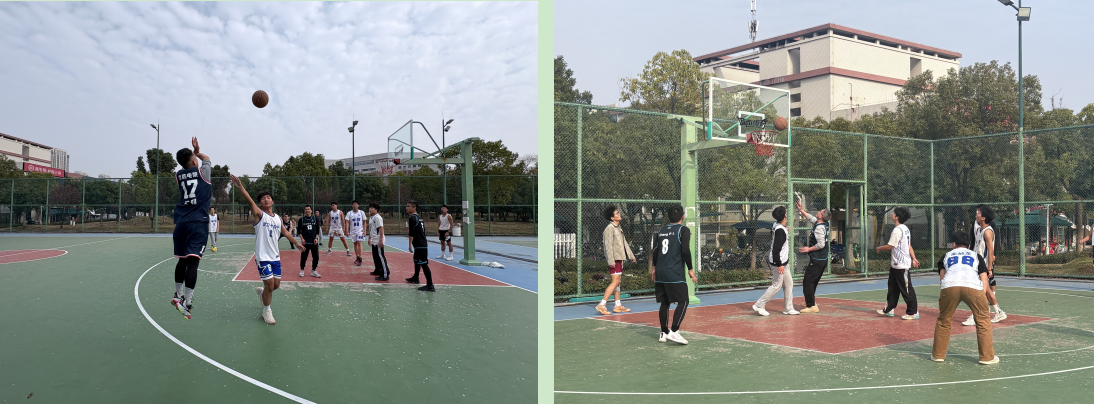 在室外篮球场举行师生篮球赛活动。学院领导班子成员及10余名老师与本科生同场竞技,用汗水诠释拼搏精神,以互动传递育人温度。