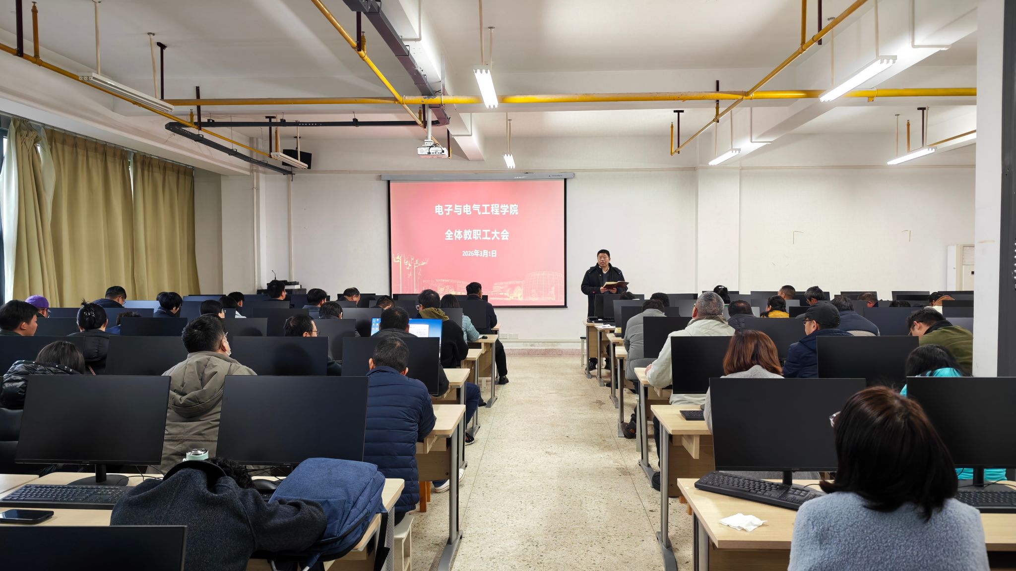 执行院长刘侃首先传达了学校“新春第一会”会议精神。他指出,当前人工智能技术的快速迭代正深刻推动高等教育教学模式、科研范式的系统性变革,为学科发展带来重要赋能机遇。全体教职工要主动顺应时代发展趋势,强化创新思维,深入研究AI与专业教育、科学研究的融合路径,探索特色化办学方向;要牢固树立底线思维,绝不触碰师德师风红线,严格落实实验室安全管理各项规范,加强实验教学过程管理,切实守牢安全发展底线。
