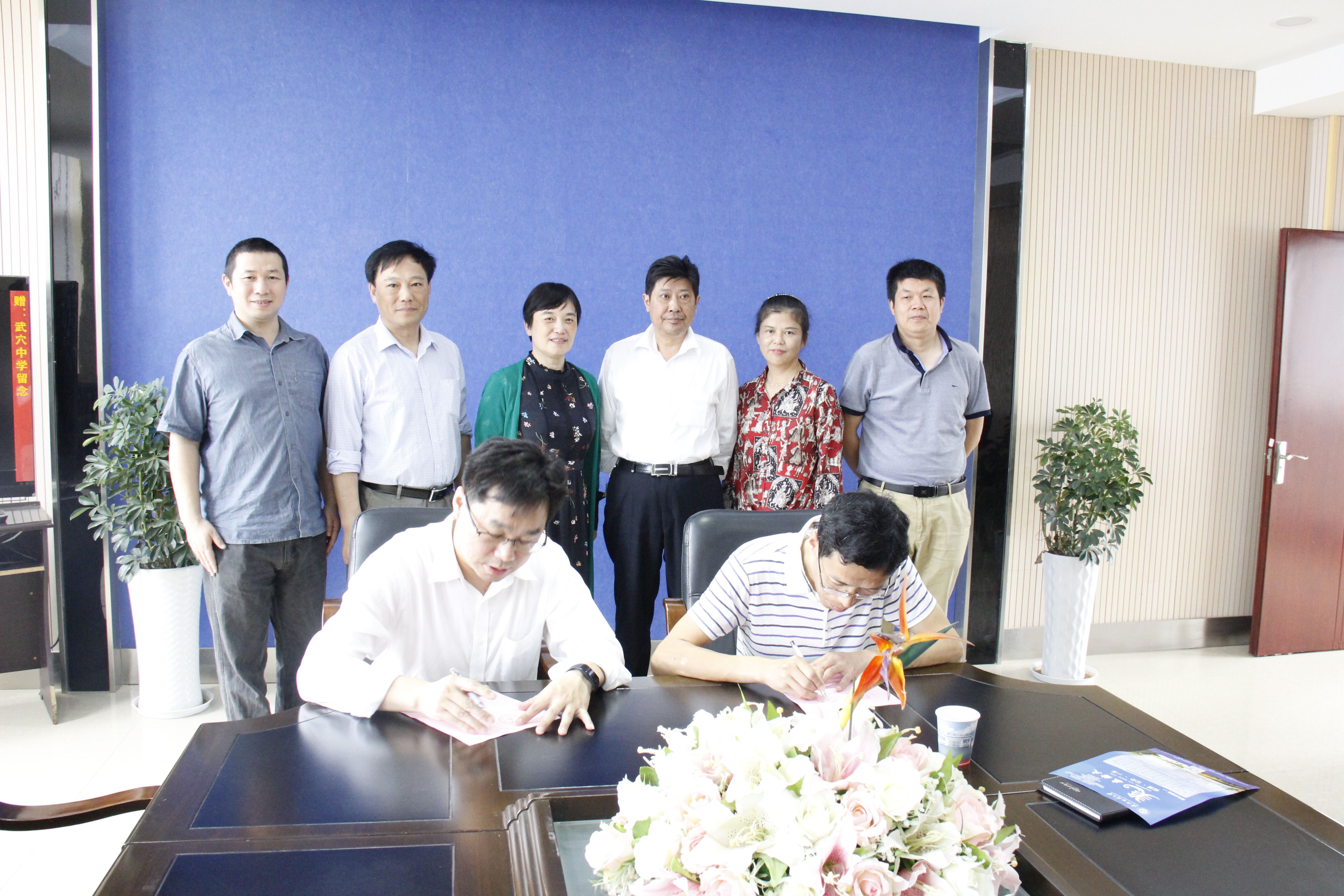 图2 刘侃院长代表武汉纺织大学和武穴中学签署了“优质生源基地”协议