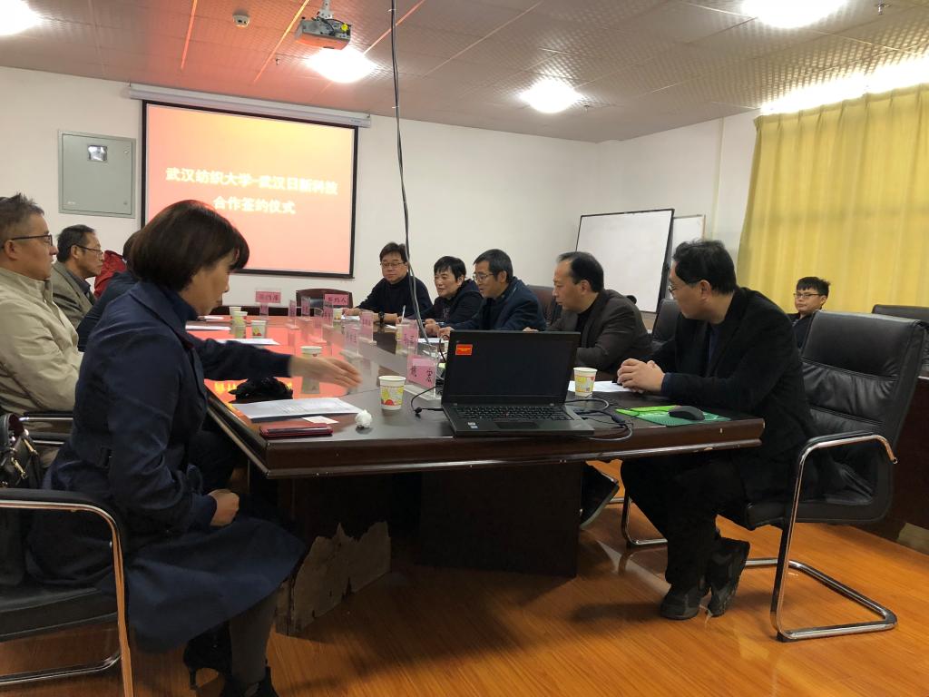 11.29日上午,武汉日新科技股份有限公司与武汉纺织大学产学研合作签约并揭牌仪式在买球平台