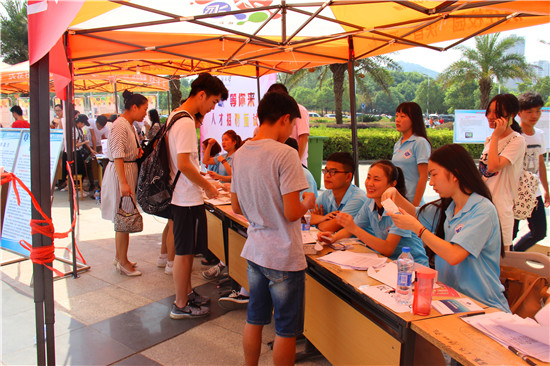 全体领导班子、海归学者、全体辅导员和学生干部、志愿者齐聚纺大阳光校区迎新点,喜迎2016级同学。
