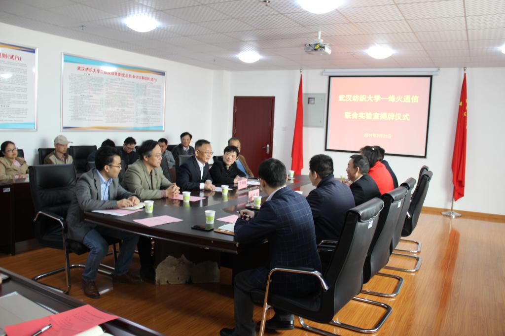 3月21日上午,武汉纺织大学-烽火通信联合实验室揭牌仪式在学校阳光校区崇真楼隆重举行。烽火科技总裁助理邹辰、武汉纺织大学副校长罗锦银及买球平台