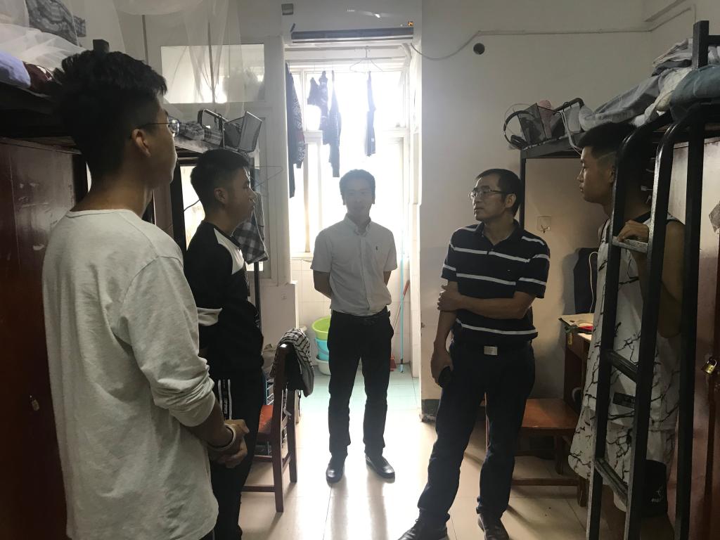 在“不忘初心、牢记使命”主题教育扎实推进之际,10月10日下午,校党委常委、副校长姜明华在学院副书记夏贤辉和2019级辅导员张灿的陪同下深入学生宿舍8B428进行走访。本次走访活动旨在深入了解学生的学习生活情况、为新生带去学校的关心和问候,让远离家乡的新生感受到纺大这个大家庭的关心与温暖。