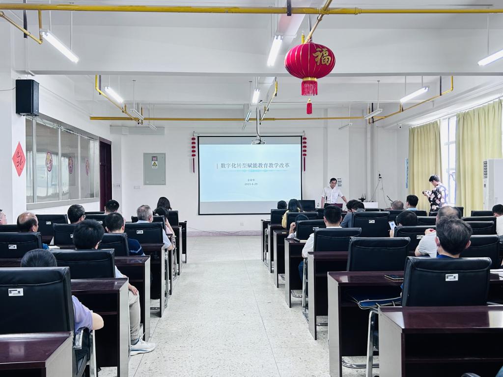 他强调,教育数字化关键在于“化”,也就是在数字时代对教育进行系统性变革,重塑教育生态,产业与数据双驱动关键是技术、评价的双向赋能。结合学校教学特点,姜明华指出了我校实施本科教育数字化改革的主要任务和主要路径,并针对课程体系建设与教育评价给出了具体建议,教育数字化转型要注重以需求驱动教育研究和实践范式变革,将数字技术融入教育领域的各个层面,实现教学模式、组织构架、教学过程、评价体系、教育治理等全方位的创新与变革。
