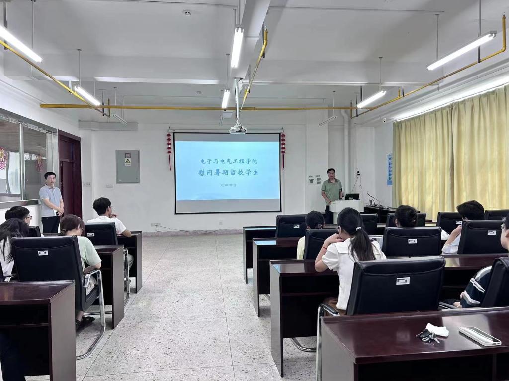 在崇真楼南楼A6013会议室开展暑期留校学生教育和慰问活动。学院领导班子成员参加了会议,为暑期留校学生做好教育,送上关怀和慰问。