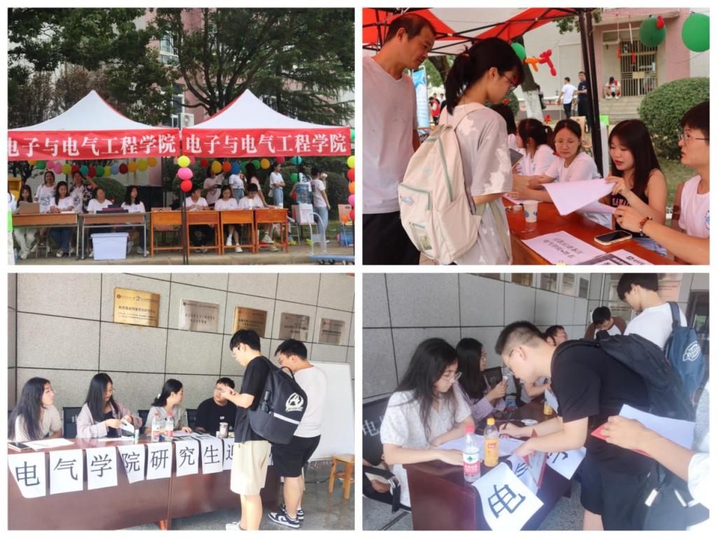 “恰逢九月时光正好”“电院正美我正年少”“逐梦电院新征程”“你好,新同学”……迎新志愿者高举创意标牌,与“吉祥物”一同热情引导新生“找到组织”,新生们拿着标语在签名墙前拍照留念,定格大学生活的珍贵瞬间。承载着梦想与希望的“许愿树”,映照着学院与萌新们之间的初遇,吸引了无数学子前来打卡。宿舍楼栋门口、走廊、迎新点摆满了气球,放眼望去,五颜六色,格外可爱。学生自发携各类乐器上阵,话筒、音响、演奏、配乐,烘托热烈氛围。从日出到日落,校园内的“红马甲”们,始终没有停下他们的步伐,用负责的工作态度和饱满的工作热情将志愿精神传播到校园里的每个角落。