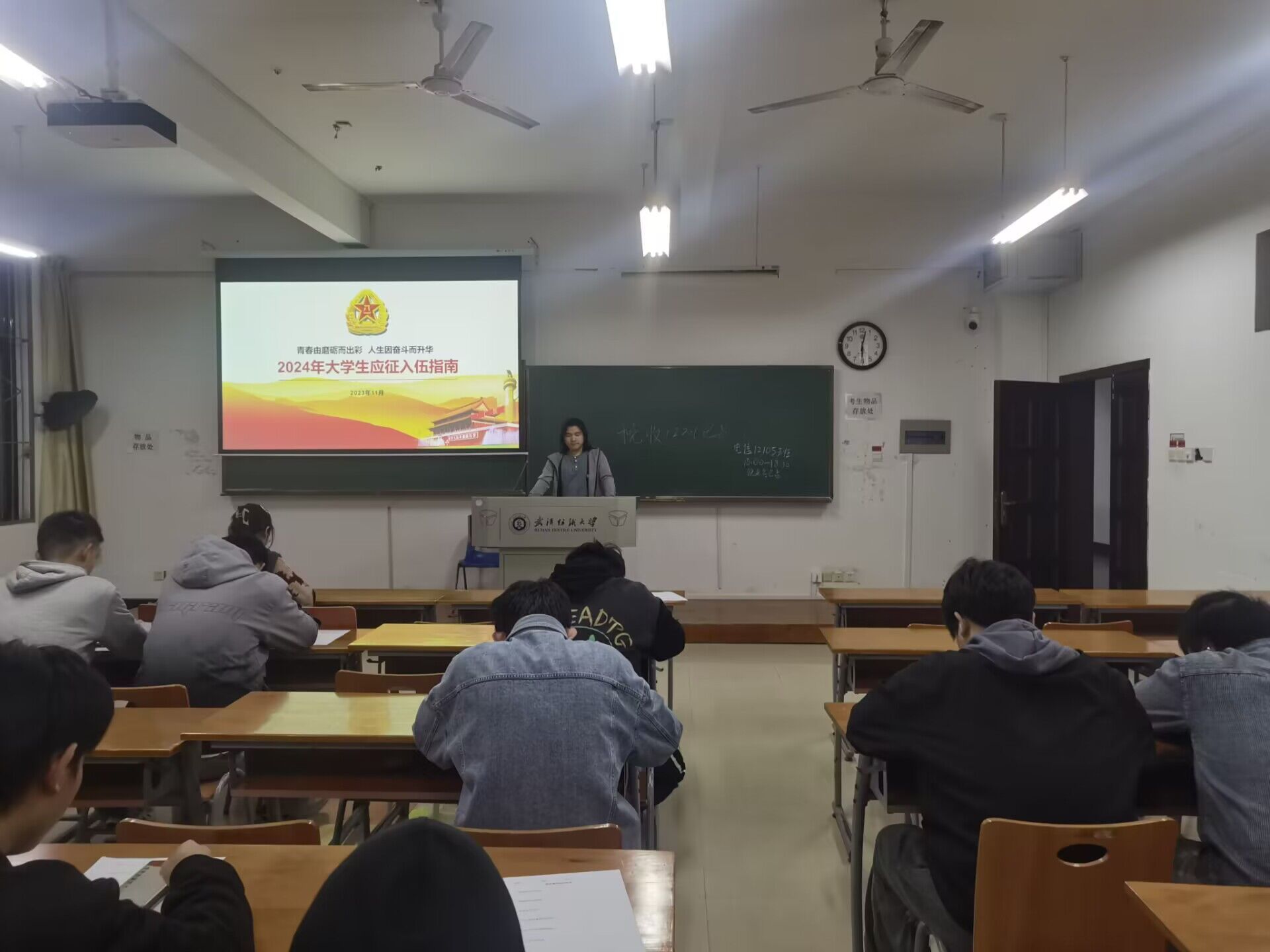 一直以来重视大学生参军入伍工作,每学期通过不同形式向学院学生进行入伍政策宣讲,夯实青年学子的国防意识与国家荣誉感,增加学生的爱国主义精神,让学生深刻认识到青年在新时代时期中应有的使命与担当,不断推进国防教育工作,为国家强军梦注入更多青年力量。