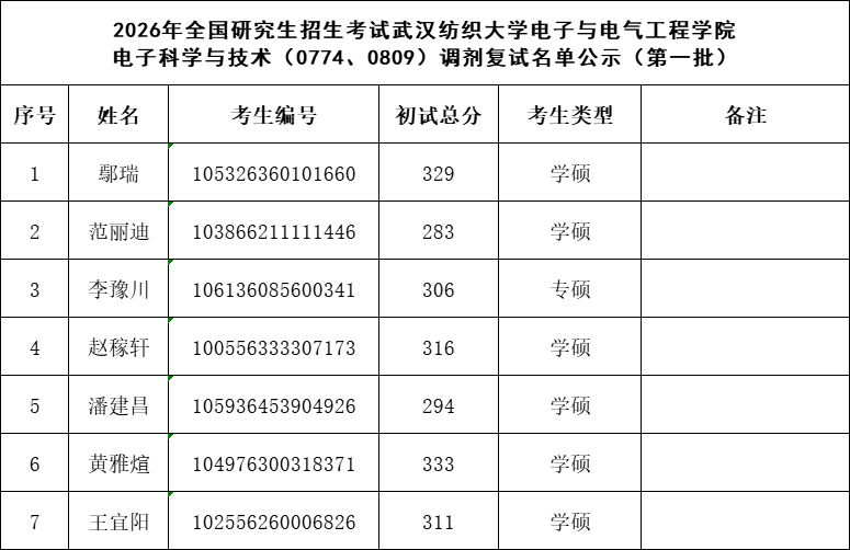 2026年全国研究生招生考试买球平台-买球app-买球网站 电子科学与技术(0774、0809)调剂复试名单公示(第一批)