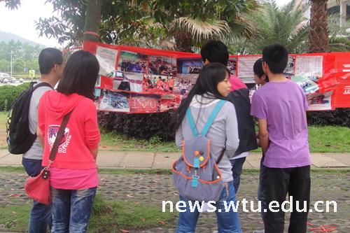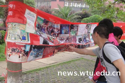 在一食堂侧门举行“电信之光---科技图片展”,一张张科技成果图片吸引了同学驻足观看,现场热闹非凡。