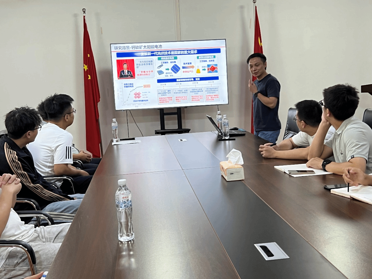 台启东研究员作了题为“基于反式结构的柔性钙钛矿电池研究”的报告,介绍了基于反式结构的钙钛矿太阳能电池具有的优势和存在的问题,着重从空穴传输材料的选择与制备方面展示了他的团队取得的相关研究成果:与现有的利用强碱制备氧化镍不同,他们通过调控pH值,利用弱碱性溶液制备了高分散性的氧化镍,另外通过季铵碱沉降的方法精准调控氧化镍纳米颗粒的尺寸和空穴传输层的能级,从而有效提升反式钙钛矿电池的光电转换效率。由于柔性钙钛矿电池具有更高的功率质量比和更低的附加成本,因此其具有更大的商业化潜力,但柔性器件的机械性能,特别是弯折稳定性的研究目前还偏少,台启东研究员针对这一问题,开发了功能分子“自发双面钝化”的策略,消除了钙钛矿上下界面的残余应力,缺陷也得到钝化,电池的机械性能得到提升,在一万次的弯曲老化下仍保持了很好的稳定性。他的研究成果对促进促进柔性反式钙钛矿光伏走向实际应用具有重要的推动作用。