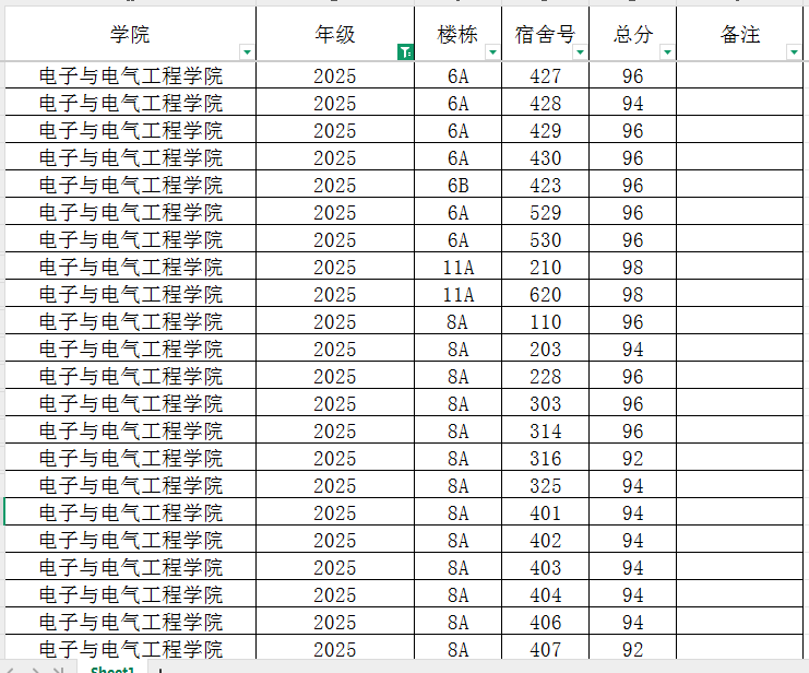 根据统一安排,现将学院本学期第8周寝室公检情况公布如下