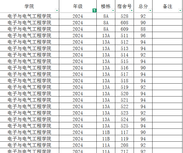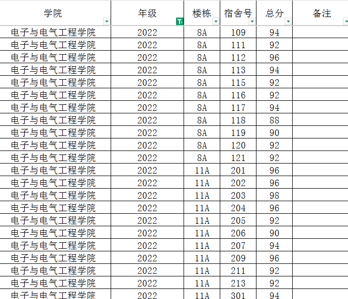 根据统一安排,现将学院本学期第11周寝室公检情况公布如下