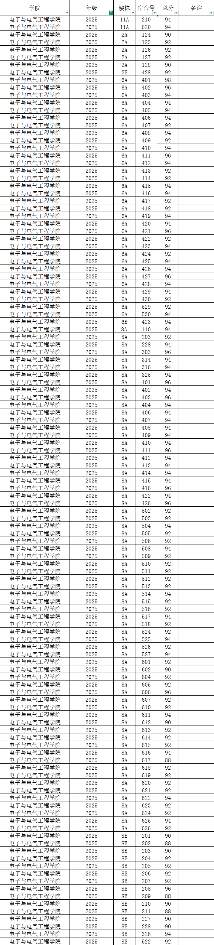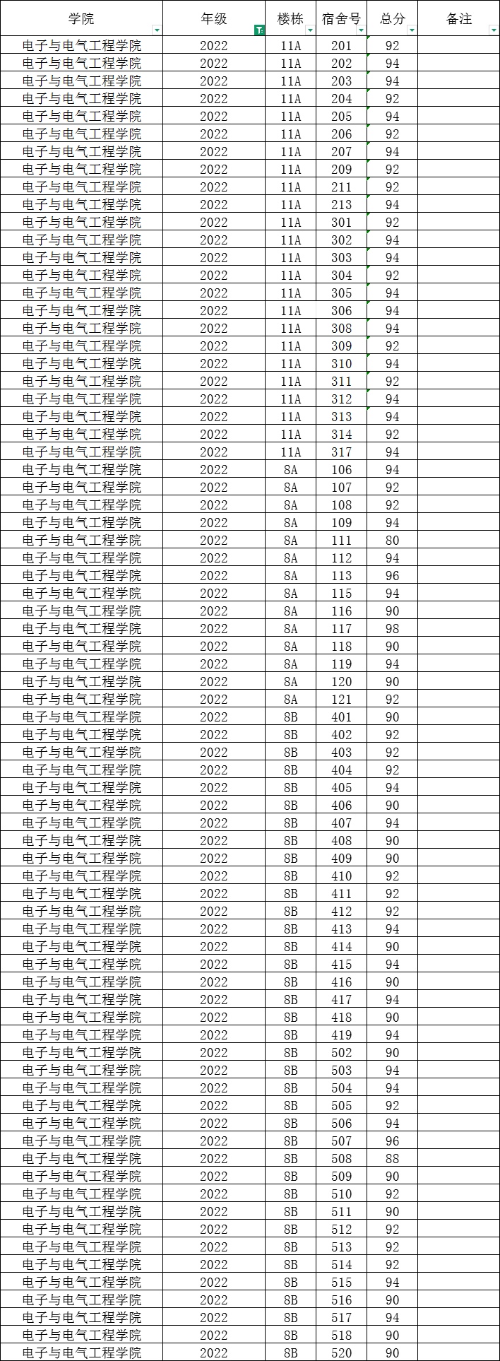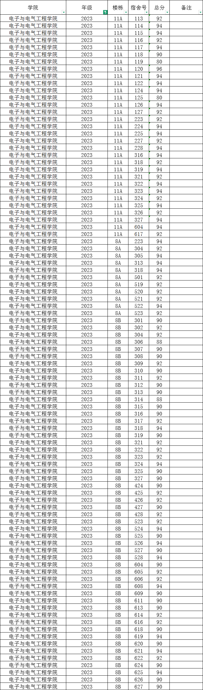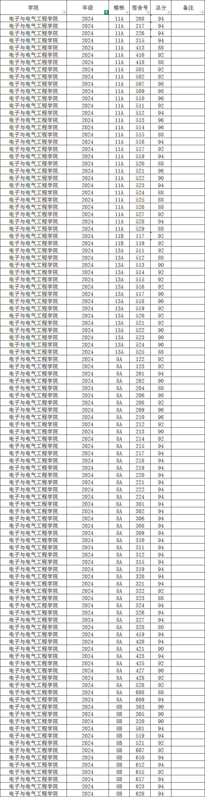 根据统一安排,现将学院本学期第14周寝室公检情况公布如下