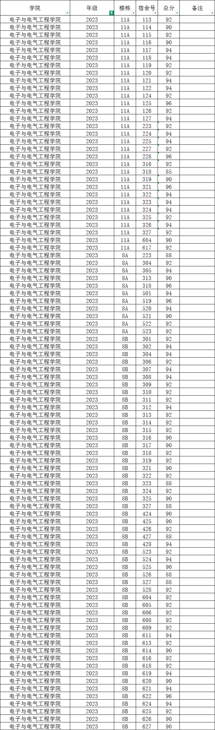 根据统一安排,现将学院本学期第15周寝室公检情况公布如下