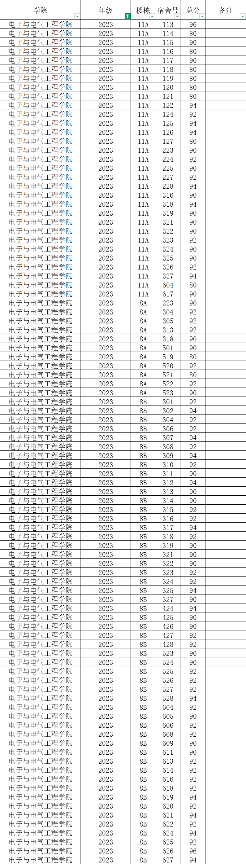 根据统一安排,现将学院本学期第18周寝室公检情况公布如下:
