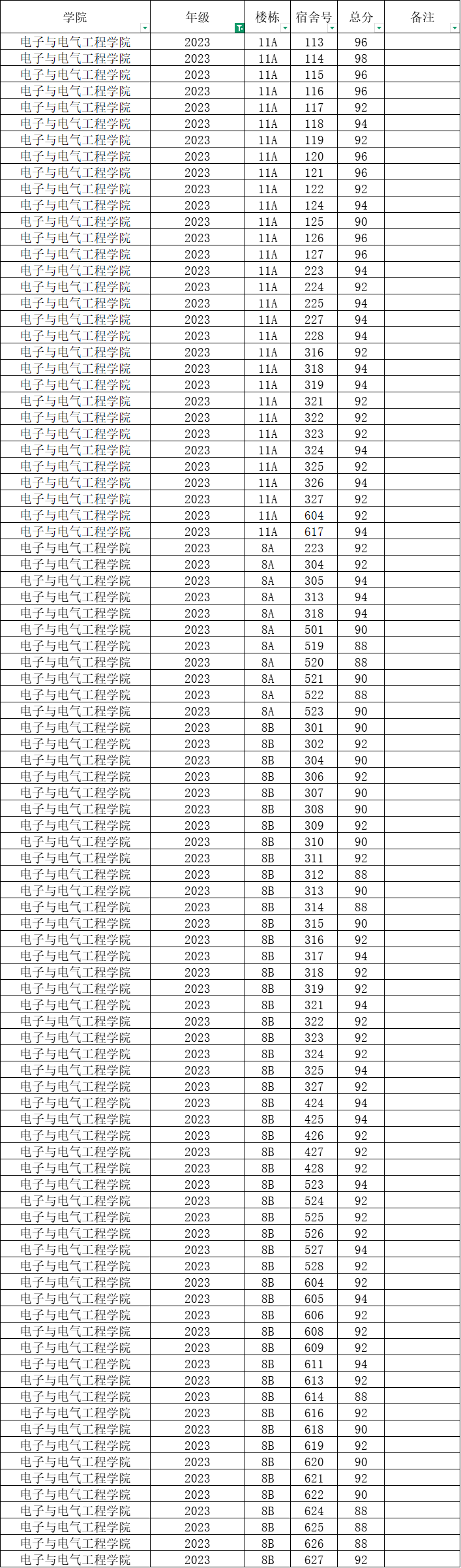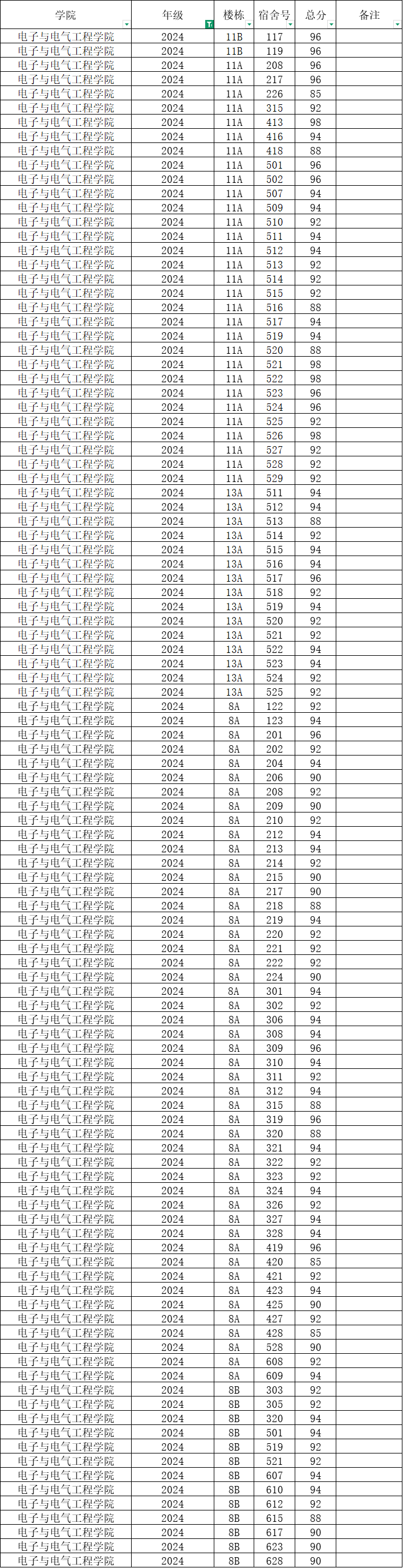 根据统一安排,现将学院本学期第5周寝室公检情况公布如下