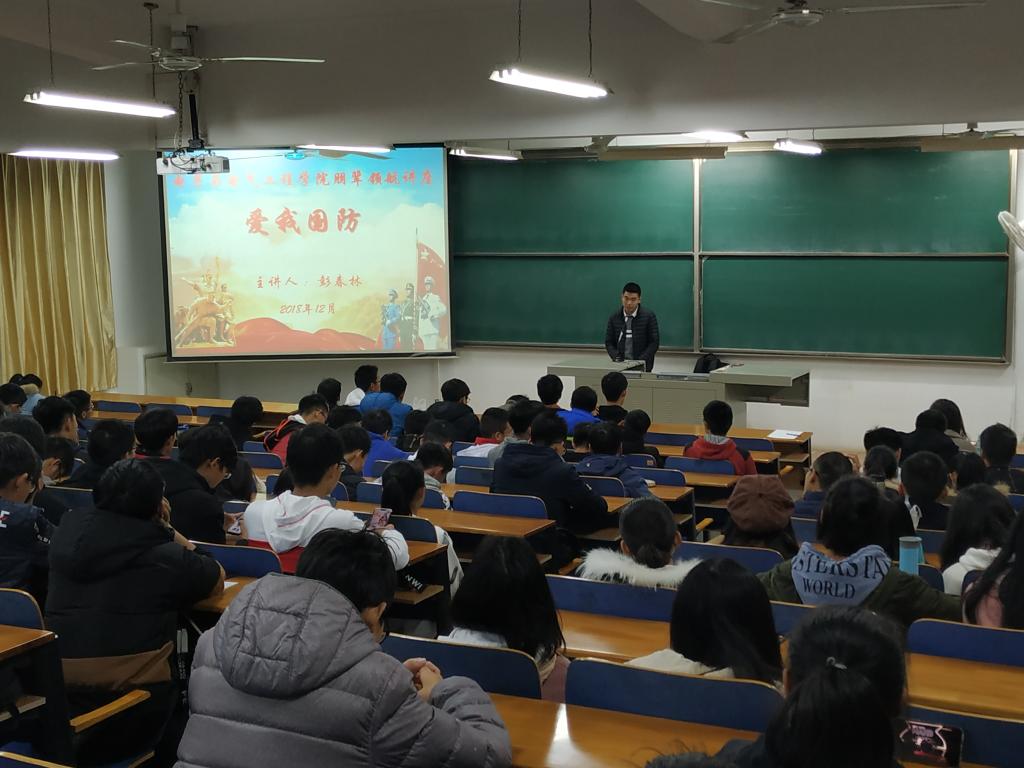 于崇志楼220教室开展了以“参军报国 爱我国防”为主题的朋辈领航讲座。此次朋辈领航由我院通信11601班退伍学子彭春林主讲。