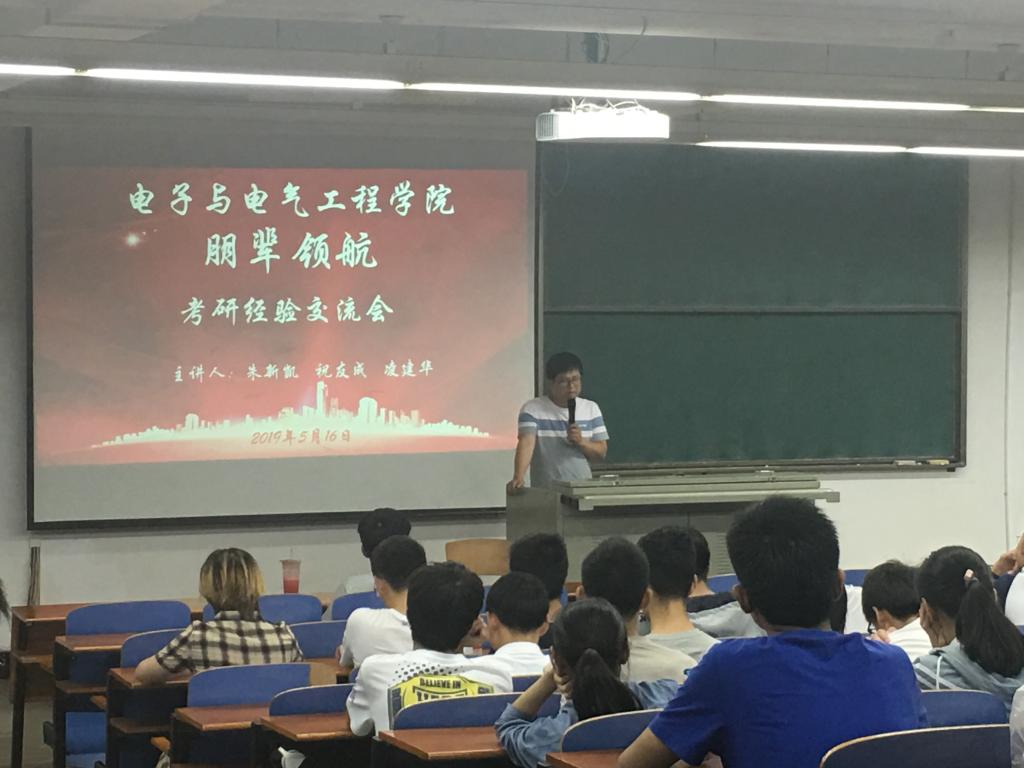2015级考研优秀学生代表祝友成、朱新凯和凌建华三位同学主讲,吴昊老师出席主持交流会,2016级全体同学以及2017、2018级部分同学聆听了本次交流会。
