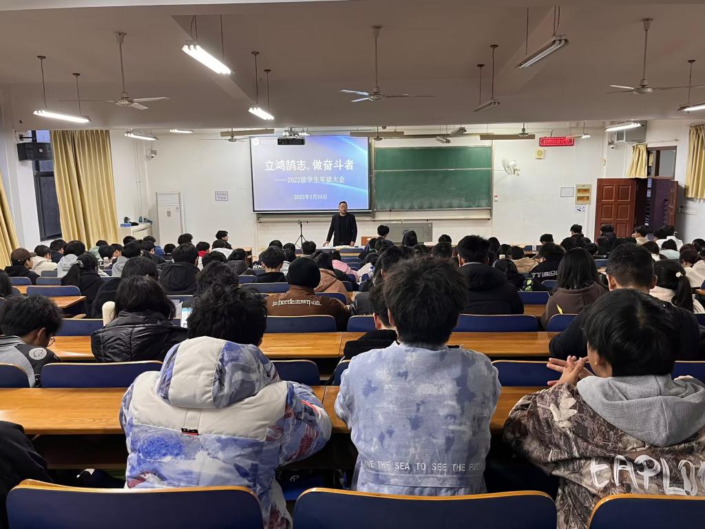 3月24日下午召开以“立鸿鹄志,做奋斗者”为主题的学风建设活动。活动由辅导员牟迪主持,2022级全体本科生参加。