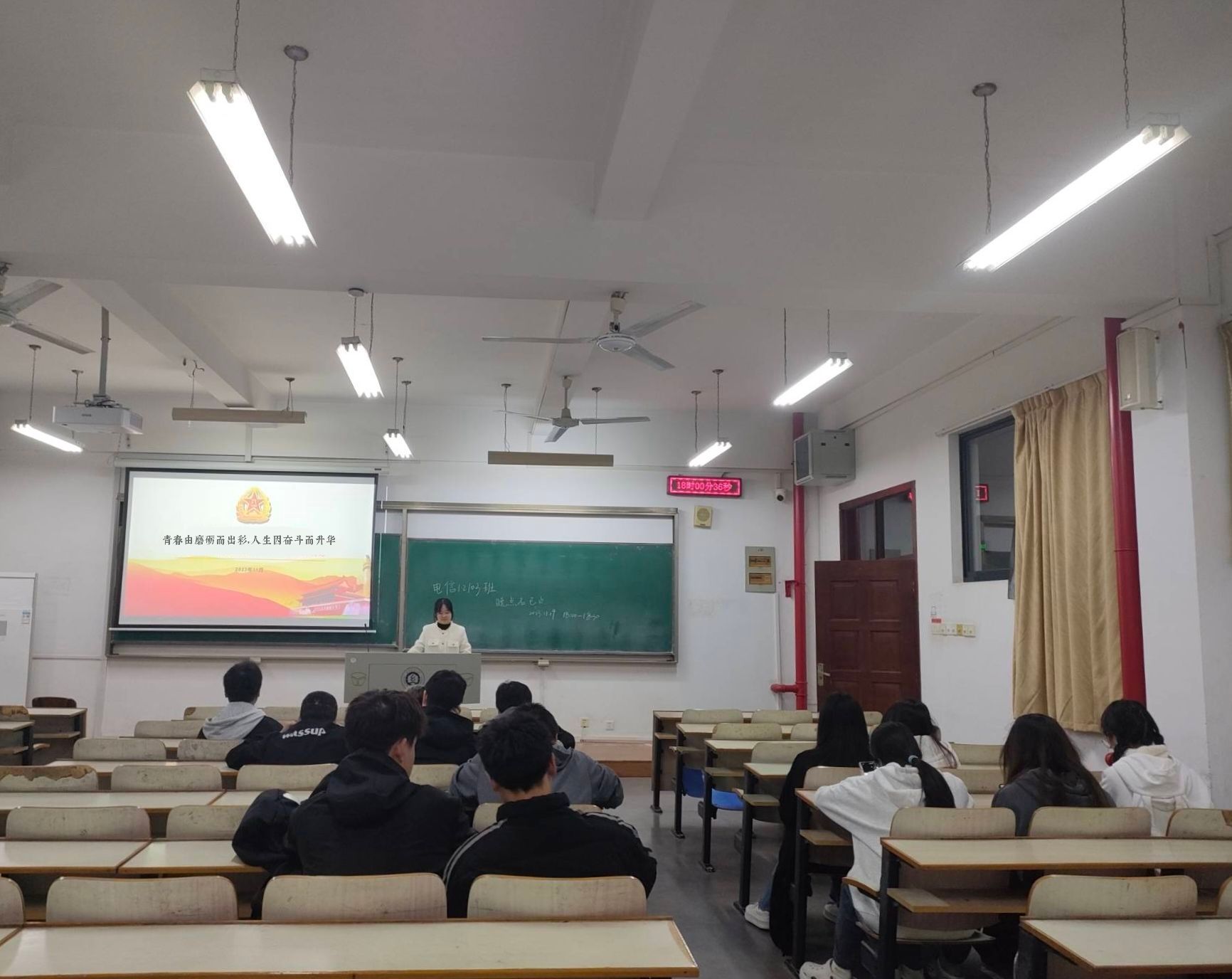 开展“青春由磨砺而出彩,人生因奋斗而升华”主题班会,辅导员、班主任与副班主任主持班会,全体学生参与。