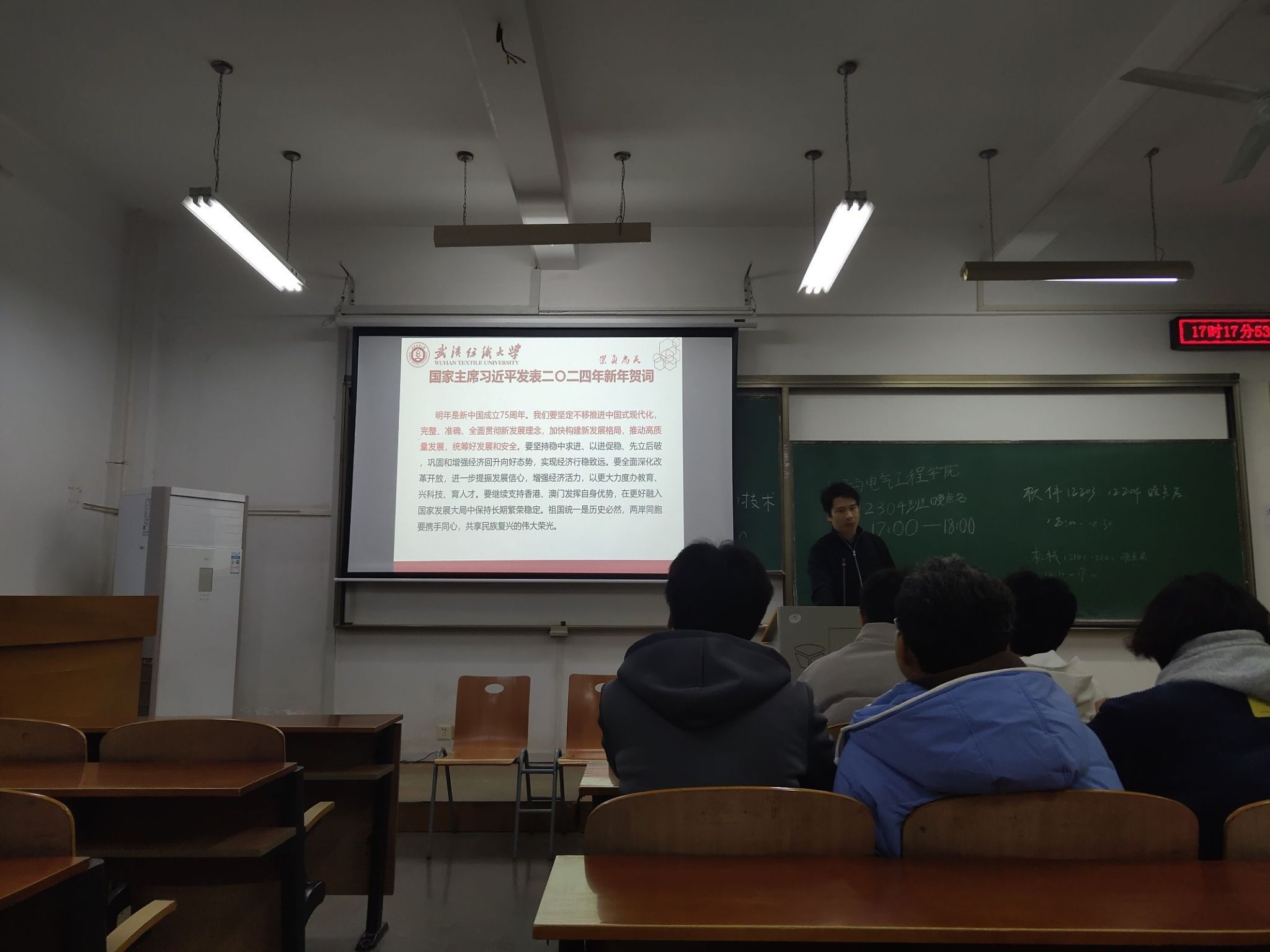 新的一年,新的气象。在班会活动上,我们共同回顾了国家主席习近平发表的2024年新年贺词。2023年,我们持续奋斗,砥砺前行。“前行路上有风有雨是常态”,我们一同回顾了2023年中国迈步前进的辛苦不易和克服困难后的辉煌成绩。经历了风雨洗礼,看到了美丽风景,取得了沉甸甸的收获。“艰难方显勇毅,磨砺使得玉成”,大家记住了一年的不易,也对未来充满信心。这一年的步伐,我们走的很坚实;这一年的步伐,我们走的很有力量;这一年的步伐,我们走的很见神采;这一年的步伐,我们走的很显底气。通过此次活动,我们更加坚定了自己的前进志向和奋斗目标。新的一年,迎接新的开始,我们将焕发新的活力与激情,去拥抱新的机遇和挑战。