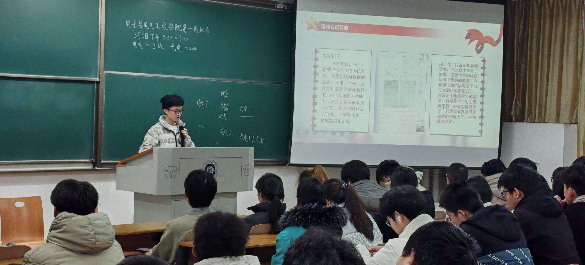 3月3日,电子与电气学院于3栋教学楼开展了一场别开生面的“弘扬雷锋精神,共筑美好校园”主题班会,旨在弘扬雷锋精神,引导同学们树立正确的人生观和价值观。