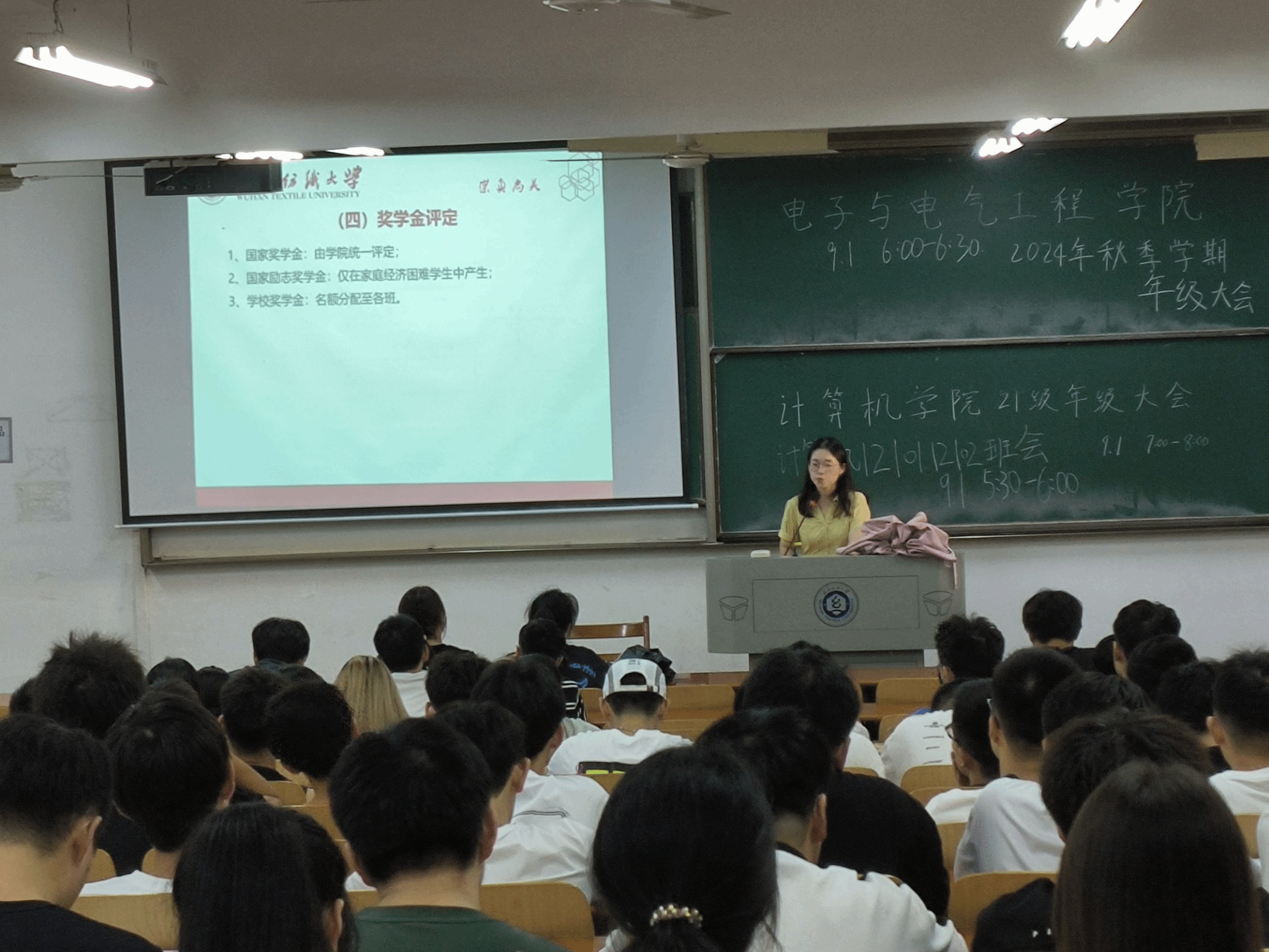 2023级本科生2024年秋季学期第一次年级大会在三号教学楼召开。会议由23级辅导员陈珍老师主持,全体23级本科生参会。